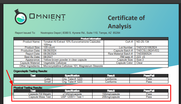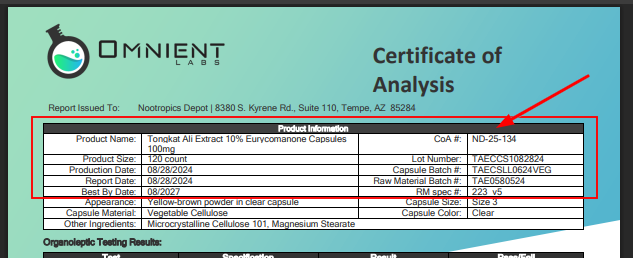 A Certificate of Analysis is a detailed document that provides verified test results for a specific batch of dietary supplement products. This document serves as proof that your supplement has been thoroughly tested and meets established quality standards for safety, purity, and potency.